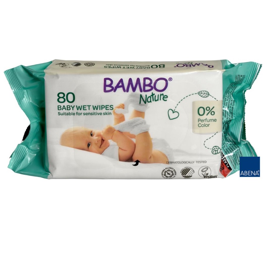 - Chusteczki nawilżane Bambo Nature są wykonane z mieszanki poliestru i wiskozy i stanowią doskonałą alternatywę tradycyjnej kąpieli przy użyciu wody i mydła.