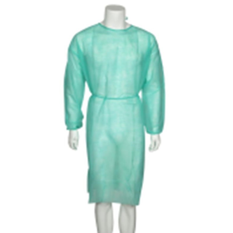 Fartuch wizytacyjny z elastycznym mankietem (gumka), SMS 14 g/m2, długość 115 cm, wiązany w pasie i przy szyi, rozmiar L, zielony, 10 szt.