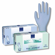Rękawice winylowe diagnostyczne niebieskie lekko pudrowane.
