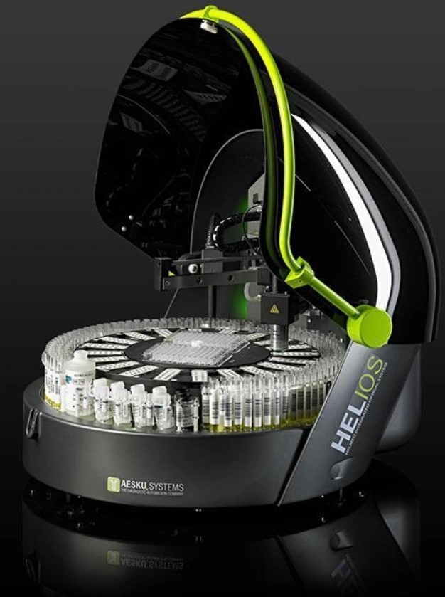 WYSTANDARYZUJ SWOJE BADANIA: aparat HELIOS jest unikatowym w swej budowie i funkcjach, pełnym automatem przeznaczonym do wykonywania badań metodą immunofluorescencji pośredniej. Dzięki zastosowaniu najnowocześniejszej techniki HELIOS nie tylko wykonuje całą procedurę manualną - od rozcieńczeń próbek, poprzez dozowanie surowicy i odczynników aż po płukanie - ale również odczytuje i interpretuje uzyskane wzory fluorescencyjne.