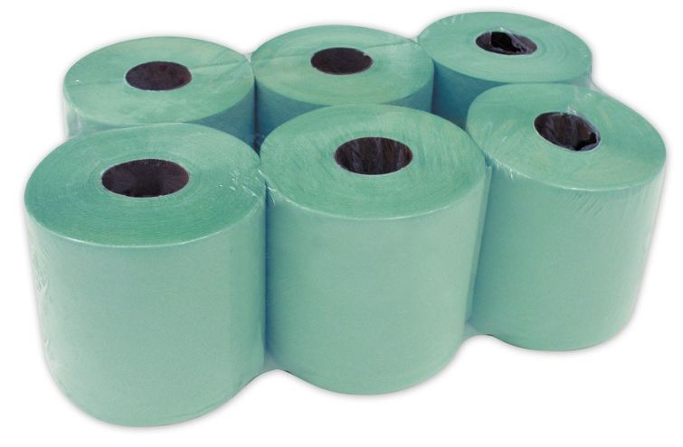Ręcznik papierowy "MAXI": - zielony, - makulatura, - 1 warstwowy, - średnica rolki - 135 mm, - szerokość rolki - 185 mm, - długość - 70 m, - ilość w opakowaniu - 6 rolek.