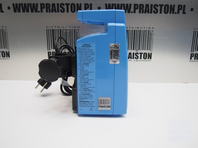- Alarmy: powietrze w linii, wyczerpane baterie, awaria kanału, błąd łącza komputera, odłączony czujnik przepływu, czas przetrzymania przekroczony, awaria urządzenia, zablokowanie klucza, otwarty zatrzask, nie wykryto przepływu w strumieniu upuszczanym, okluzja w dół, przedostawanie się okluzji, wykryto przepływ pierwotny podczas,