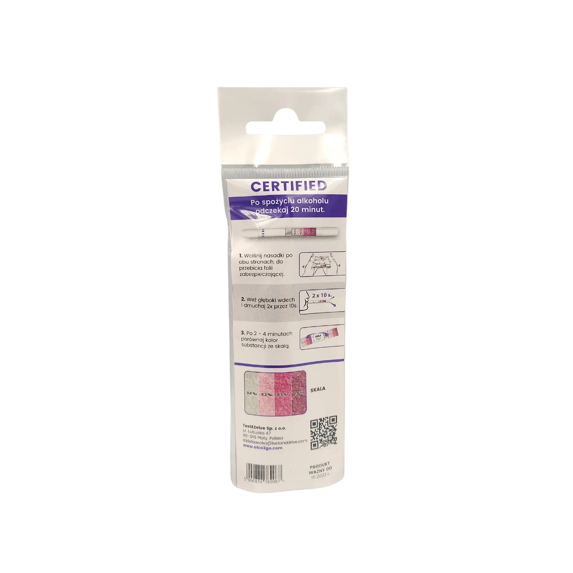 Atestowane alkomaty jednorazowe Alco2GO służą do dokładnego pomiaru zawartości alkoholu w wydychanym powietrzu. Wystarczy kilka sekund, abyś przekonał się, czy możesz prowadzić. Alkomaty Test&Drive szybko zmierzą zawartość alkoholu w wydychanym przez Ciebie powietrzu.