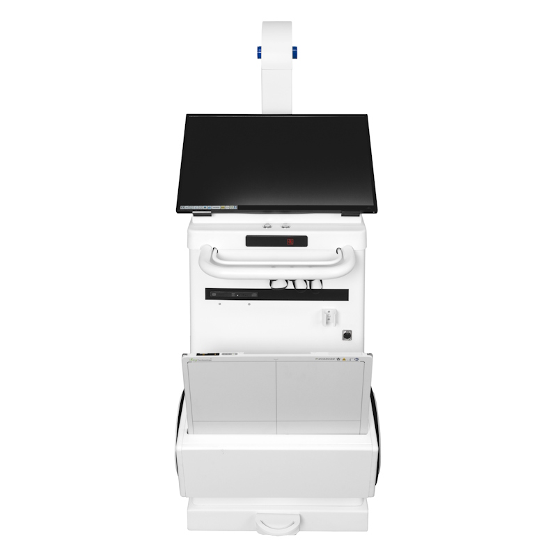 Aparat mobilny rtg posiada w standardzie filtry pediatryczne. Wygodna rękojeść aparatu rtg pozwala na szybkie manewrowanie, puszczanie rękojeści powoduje uruchomienie automatycznego hamulca, który ustala aparat rtg w nieruchomej pozycji.