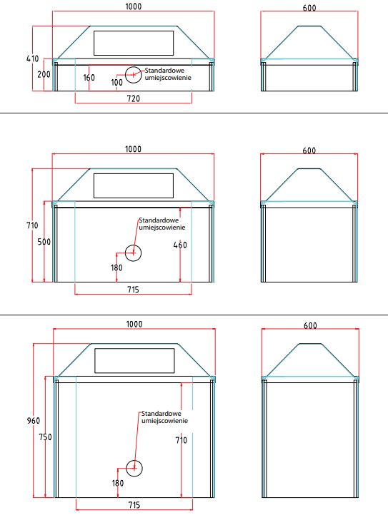 Pokrywa zbudowana jest z przezroczystego PETG oraz okienka wykonanego z bezpiecznego szkła zapewniającego dobrą widoczność. Przezroczyste ściany wykonane z PETG wzmocnione są aluminiowymi wspornikami na krawędziach. Są one dostępne w trzech wysokościach – 200, 500 oraz 750 mm. Wyższe komory posiadają większy otwór, więc mogą współpracować z pochłaniaczami o większej wydajności. Komory dostarczane są w zestawie do samodzielnego montażu, co zmniejsza koszty ich transportu.