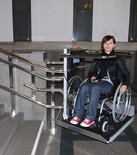 Platforma przyschodowa OMEGA przemieszcza się po torze krzywoliniowym. Przeznaczona jest do transportu osób niepełnosprawnych, które poruszają się na wózkach inwalidzkich lub dla osób, które chodzą natomiast mają problemy z przemieszczaniem się po schodach. W stanie złożonym platformę można przywołać do miejsca wsiadania za pomocą naściennych kaset przywoławczych, montowanych na przystankach. Po zajęciu miejsca na platformie ruch w górę lub w dół odbywa się po naciśnięciu pilota znajdującego się bezpośrednio na urządzeniu. Zbudowana jest z części stałej - szyny (montowanej do słupków nośnych lub bezpośrednio do ściany) oraz ruchomej - platformy.