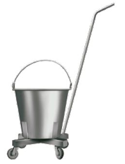 2-035 Wiadro mobilne zdejmowane, umieszczone na podstawie mobilnej - koła o średnicy 50 mm. Długość rączki: 750 mm.