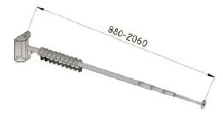 Wysięgnik teleskopowy ze stali nierdzewnej mocowany do ściany bez uchwytu na kroplówki z tkaniną w kolorze zielonym. Zasłona o wymiarach 1600x1500 mm. Zakres regulacji wysuwu: 880/2060 mm.
