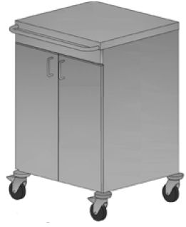 Szafka anestezjologiczna z dwoma drzwiczkami otwieranymi skrzydłowo. Blat prosty. Wewnątrz jedna półka wykonana ze stali nierdzewnej. Uchwyt do prowadzenia znajdujący się z boku szafki. Średnica kółek: 100 mm. Wymiary blatu: 650x600 mm.