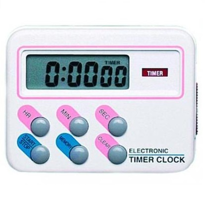 Odliczanie/naliczanie czasu, głośny sygnał dźwiękowy sygnalizujący zakończenie przedziału czasowego. Zegar, stoper i funkcja pamięci. Stoper do 24 godz. Mocowanie: magnes, statyw lub klips.