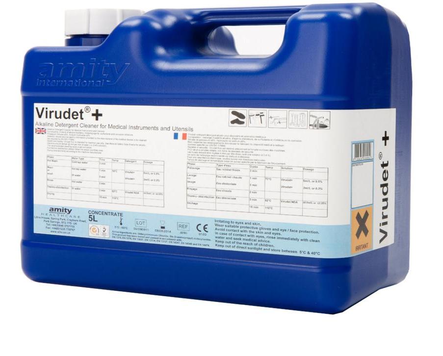 Virudet+ to alkaliczny środek czyszczący, który został zaprojektowany specjalnie do automatycznej dekontaminacji urządzeń medycznych, takich jak przyrządy anestezjologiczne, narzędzia chirurgiczne, buty chirurgiczne, wózki, pojemniki ze stali nierdzewnej. Virudet+ nie zawiera substancji niebezpiecznych, jest wysoce wydajnym, bezpiecznym środkiem w procesie zmywania wielu białkowych i organicznych zanieczyszczeń z powierzchni, także jeżeli chodzi o zaschniętą krew i tkankę. Można go bezpiecznie używać na każdego rodzaju powierzchniach