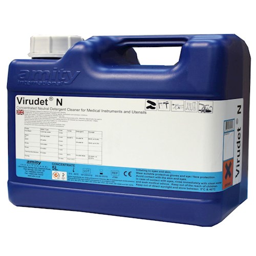 Neutralny nisko pieniący środek czyszczący. Virudet N jest preparatem stosowanym w myjniach automatycznych, endoskopowych (AER) i innych zautomatyzowanych systemach dekontaminacji i mycia manualnego. Jest to neutralny, skoncentrowany detergent o wysokiej kompatybilności materiałowej. Usuwa silnie utrwalone zanieczyszczenia krew, białka, śluz i pozostałości tkanek. Składniki preparatu tworzą idealną kompozycję do mycia delikatnych narzędzi chirurgicznych, anestezjologicznych i endoskopów oraz wrażliwych na działanie enzymów. Virudet N jest wyrobem medycznym klasy I.