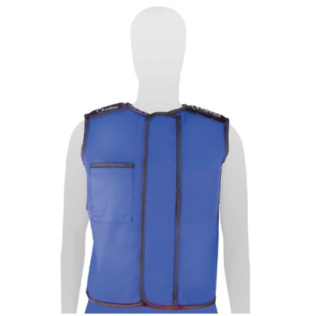 Kamizelka zabezpieczająca przód, boki i tył użytkownika.