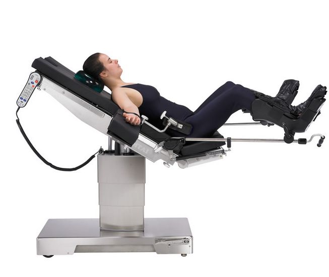 - ławeczka nerkowa z włókna węglowego (przenikalność dla promieni RTG) Mechaniczna obsługa w celu lepszego kontrolowania nacisku na pacjenta