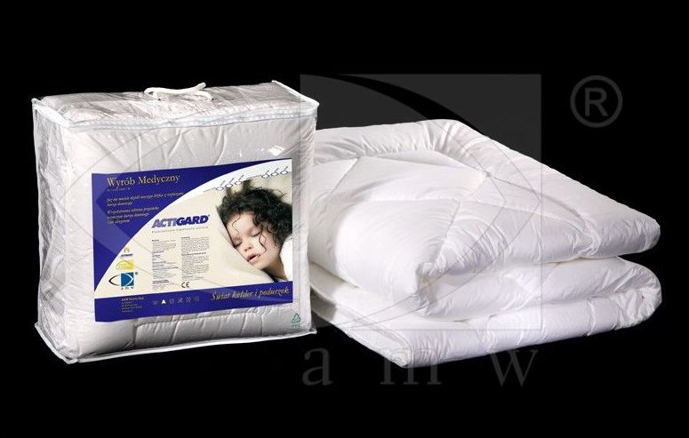 Kołdra ActiGard® jest produktem, w którym zastosowana tkanina została nasączona substancją o tej samej nazwie. Dzięki temu posiada zdolność absorbowania i usuwania nieprzyjemnych zapachów. Przeciwdziała zarazem rozwojowi mikroorganizmów, roztoczy kurzu domowego, grzybów oraz pleśni. Tkanina kryje w sobie jednocześnie tajemnicę charakterystycznego zapachu, który zapewnia uczucie relaksu w najbliższym otoczeniu. Uprzyjemnia swoim użytkownikom chwile odpoczynku. Temperatura prania: 60°C. Skład tkaniny: 100% bawełna. Kolory: biały. Wypełnienie kołder: 100% Poliester silikonowany Hollow. Właściwości wypełnienia: włókna poliestrowe Hollow, termicznie skręcane, posiadające spiralny kształt i wysoką sprężystość. Zapewniają doskonałą izolację cieplną i puszystość. Sprawiają, że ludzkie ciało podczas snu oddycha. Przeciwdziałają osadzaniu się kurzu. Charakteryzują się właściwościami antyalergicznymi. PRODUKT ANTYALERGICZNY. WYRÓB MEDYCZNY PL/CA01 04605/W. Zdrowotne i jakościowe walory naszych wyrobów medycznych zostały potwierdzone pozytywną opinią kliniczną oraz Świadectwem Jakości Instytutu Leków w Warszawie.