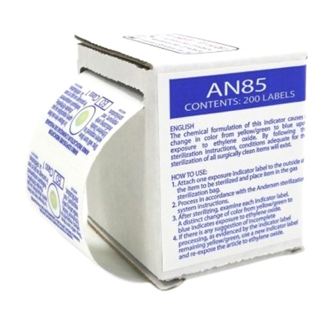 Naklejki wskaźnika ekspozycji dają natychmiastowe wizualne potwierdzenie przeniknięcia tlenku etylenu przez ładunek sterylizacyjny. Zmieniają kolor z żółtego/zielonego na jasny, pudrowy niebieski.