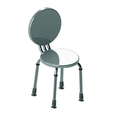 Taboret toaletowy pod prysznic. Aluminiowy taboret toaletowy z plastikowym siedziskiem. Odczepiane podparcie pleców. Wysokość siedziska regulowana.