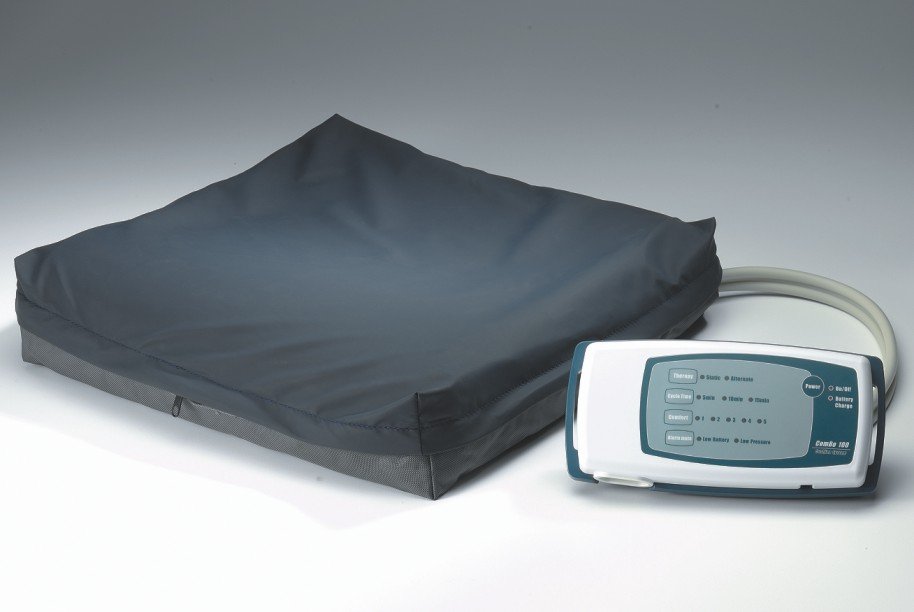 Zestaw składa się z poduszki i pompy. Poduszka zbudowana jest z wyprofilowanej podstawy piankowej oraz z sześciu komór powietrznych. Zapewnia doskonałe odciążenie, równomiernie rozkłada ciężar. Ciała, stymuluje przepływ krwi w naczyniach włosowatych. Wymiary poduszki: dł. 43 cm x szer. 43 cm x wys. 10 cm. Waga poduszki: 1,44 kg. Wyposażona w pokrowiec, który nie przepuszcza cieczy. Maksymalne dopuszczalne obciążenie: 120 kg. Przepływ powietrza: 1,5 l/min. regulacja ciśnienia w zakresie: 40 - 100 mmHg. Czas cyklu do wyboru: 5, 10, 15 min. Wybór trybu stałego lub zmiennego. Alarm niskiego ciśnienia i niskiego poziomu naładowania baterii pięć poziomów komfortu do wyboru. Czas ładowania baterii: 8 godzin. Czas pracy po pełnym naładowaniu: 24 godziny. Wymiary: dł. 25 cm x szer. 12 cm x wys. 5,7 cm. Waga: 960 g.