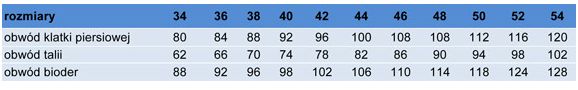 Dostępne kolory i rozmiary: