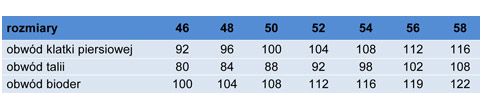 Dostępne kolory i rozmiary: