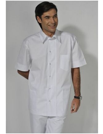 Bluza męska z kołnierzem, ozdobne stebnowanie na mankiecie rękawa. Dwie dolne kieszenie, jedna na piersi.