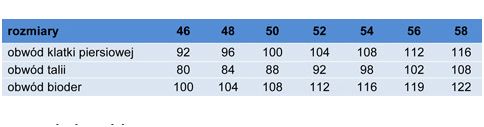 Tabela wymiarów dostąpna w załączniku.
