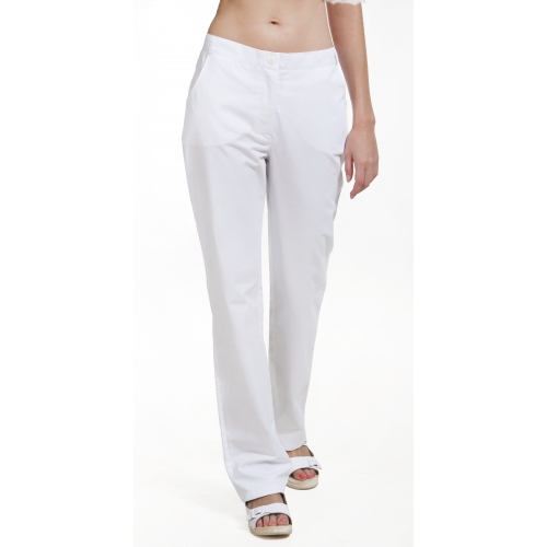 Spodnie damskie, klasyczne z gumką z tyłu. Dwie kieszenie wpuszczane po bokach.