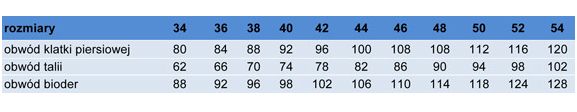 Tabela wymiarów dostępna w załączniku.