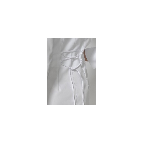 Sukienka zapinana na napy. Rękaw 3/4 z wywijanym mankietem. Z tyłu ozdobne wiązanie. Dwie dolne kieszenie, jedna na piersi.