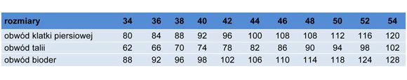 Tabela wymiarów dostępna w załączniku.