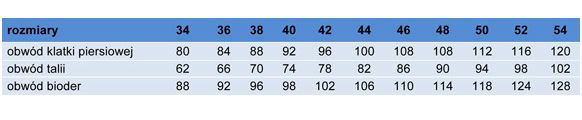 Tabela wymiarów dostępna w załączniku.
