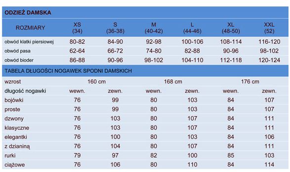 Tabela wymiarów dostępna w załączniku.