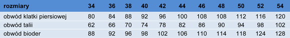 Tabela wymiarów dostępna w załączniku.