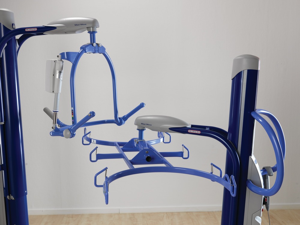 Podnośnik może być wyposażony w elektrycznie sterowaną sztywną czteropunktową ramę do zaczepiania nosideł zatrzaskowych z pacjentem w pozycji siedzącej, umożliwiającą zmianę pozycji po podniesieniu pacjenta.