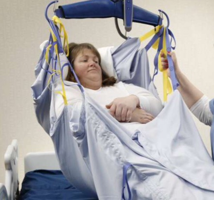 Maxi Transfer Sheet to mata do zmiany pozycji i podnoszenia pacjenta (której można również używać jako prześcieradła) używana razem z podnośnikiem pasywnym do poziomego przenoszenia i układania pacjenta w łóżku. Ciekawa koncepcja do poziomego przenoszenia i układania pacjenta w łóżku, która upraszcza proces przenoszenia.