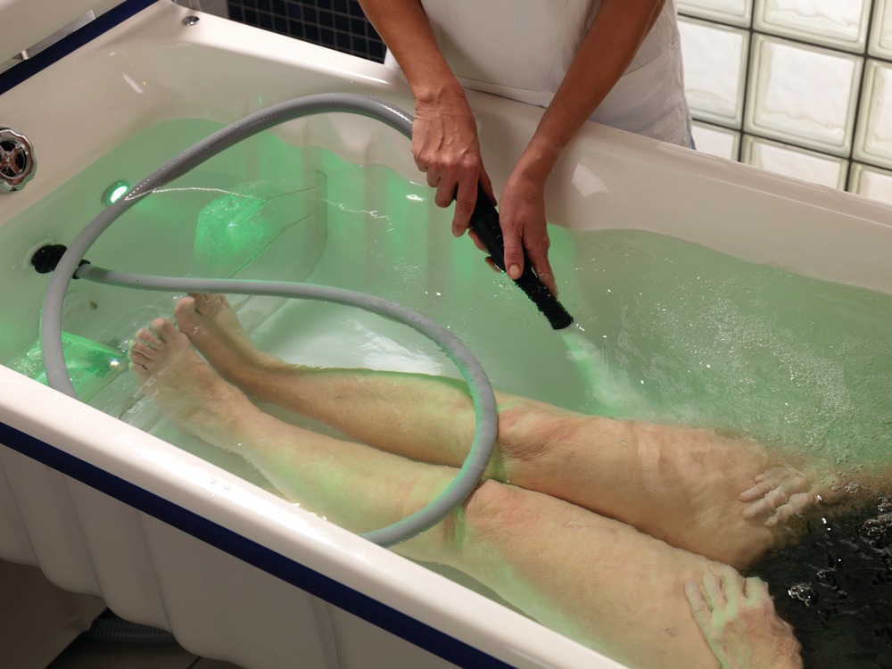 Opcjonalny wbudowany system dozujący środek dezynfekcyjny ułatwia czyszczenie i dezynfekcję wanny i sprzętu do przenoszenia, zaś funkcja płukania gorącą wodą zapobiega namnażaniu się bakterii w rurach.