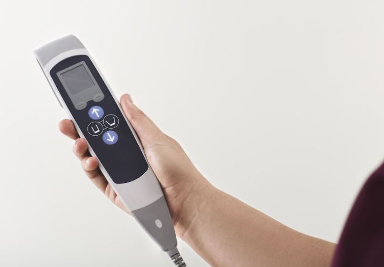 Pilot znajduje się na długim elastycznym przewodzie, który umożliwia opiekunowi pozostanie blisko pacjenta przez cały czas przenoszenia.