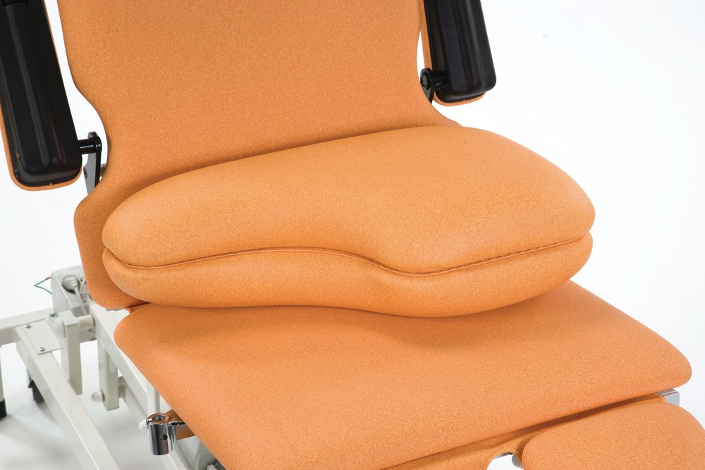 • Każda kozetka posiada na wyposażeniu tapicerowane składane podłokietniki, dzielony segment nóg (ze wspomaganą regualcją) z możliwością jego wydłużenia, zdejmowaną poduszkę pod głowę, uchwyt na prześcieradło papierowe w rolce.