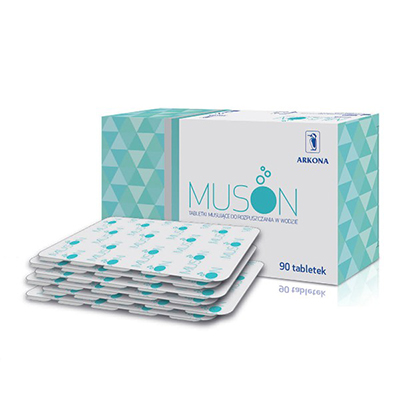Muson to wyrób medyczny, który chroni lekarza przed zakażeniami od pacjenta. Występuje w postaci tabletek musujących, rozpuszczalnych w wodzie. Opakowanie Musonu zawiera 90 tabletek, cena jednej tabletki to 50 groszy. Jedna tabletka przeznaczona jest do rozpuszczenia w 200 ml wody.
