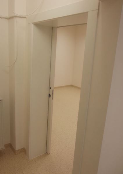Drzwi przesuwne z ościeżnicą regulowaną na szerokość muru . Drzwi i ościeżnica zabezpieczone ekranem anty radiacyjnym grubości. Drzwi są zamontowane na bardzo solidnym systemie jezdnym, wyposażone w zamek hakowy.
