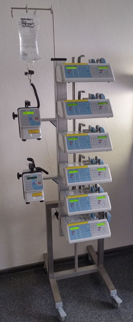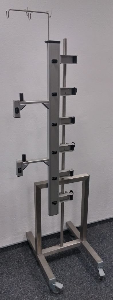 Wyposażenie dodatkowe: Mobilny statyw o podwyższonej nośności (do 35 kg), Wieszak na pojemniki z płynami infuzyjnymi