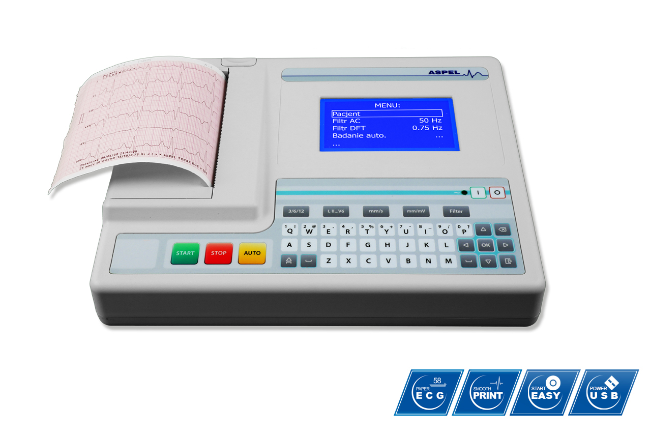 Elektrokardiograf ASPEL ECG MINT v.07.301 - jest 1, 3, 6 kanałowym aparatem umożliwiającym wykonywanie elektrokardiogramu w pełnym zakresie 12 odprowadzeń. Przeznaczony jest do wykonywania badań EKG dorosłych i pediatrycznych pacjentów w celu wyszukiwania nieprawidłowości kardiologicznych, wykrywania niedokrwienia mięśnia sercowego bądź zawału. Elektrokardiograf przeznaczony jest do użycia we wszystkich placówkach służby zdrowia przez przeszkolony personel. Zapis badania odbywa się w trybie ręcznym lub w trybie automatycznym.