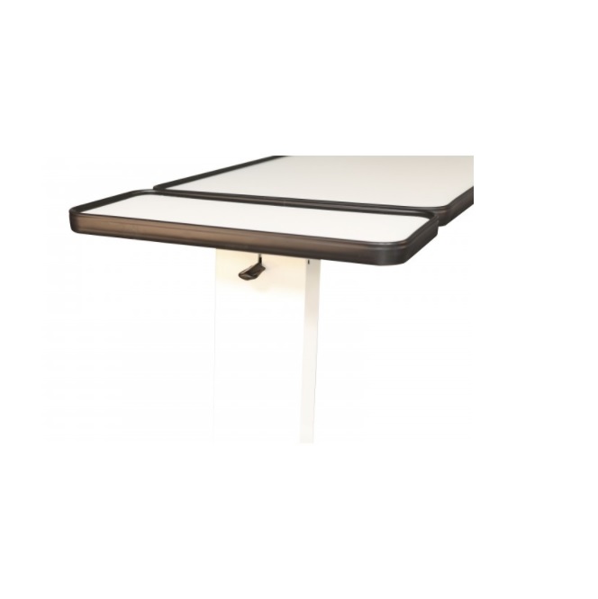 Stolik przyłóżkowy zrobiony z bardzo solidnej, a zarazem lekkiej aluminiowej ramy, posiada cztery monce kółka (2 z nich posiadają hamulec). Wysokość blatu można łatwo regulować. Blat zakończony jest wyższym obrzeżem, aby zapobiegać zsuwaniu się przedmiotów.