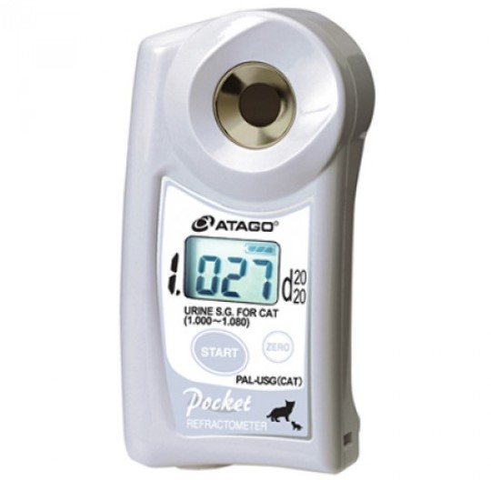 Refraktometr pozwalający na szybkie i higieniczne określenie ciężaru właściwego moczu kotów. Jednocześnie wykonywany jest pomiar temperatury próbki. Refraktometr jest łatwy w użyciu i niewielki (wielkości telefonu komórkowego), zawiera wbudowaną funkcję automatycznej kompensacji temperatury. Hermetyczna obudowa umożliwia bezproblemowe mycie pod bieżącą wodą.