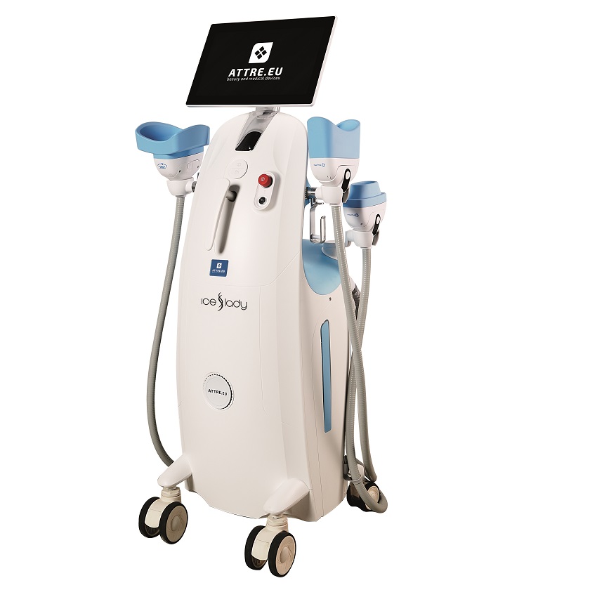 Ice Lady to nowoczesna kriolipoliza, która w sposób kontrolowany prowadzi do uszkodzenia podskórnej tkanki tłuszczowej. Umożliwia skuteczne modelowanie ciała i redukcję obwodów w opornych na dietę i ćwiczenia partiach ciała. Urządzenie zapewnia najwyższy stopień bezpieczeństwa, podczas zabiegu stale kontroluje temperaturę w czasie rzeczywistym. Wyposażone jest w wydajny system chłodzenia 360°, który efektywnie schładza tkankę we wszystkich płaszczyznach i zapewnia skuteczność zabiegu. Cztery głowice zabiegowe mogą pracować w tym samym czasie lub niezależnie. Każda głowica ma możliwość pracy w trybie pulsacyjnym i ustawienia indywidualnych parametrów zabiegowych.