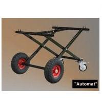 Wózek terenowy wykonany w całości z rurek stalowych, posiada dwa grube terenowe koła oraz dwa koła z hamulcem.