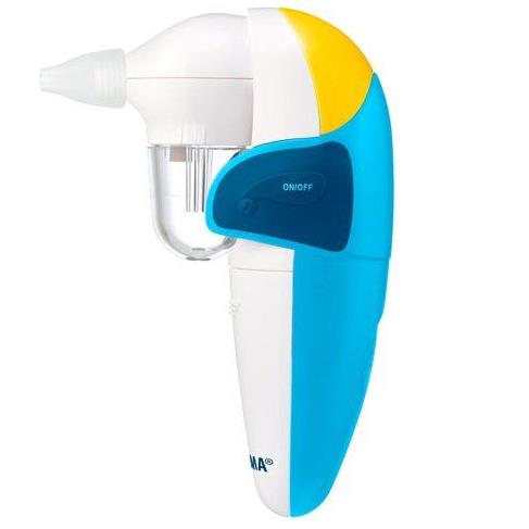 Urządzenie ma ergonomiczny kształt ułatwiający jego trzymanie w prawidłowej pozycji, dzięki temu sposób aplikacji jest intuicyjny i bezpieczny. Podczas aspiracji utrzymuj głowę dziecka prosto (w pionie) i wprowadź końcówkę do jednego z nozdrzy dziecka. Uważaj, aby nie wepchnąć końcówki zbyt głęboko do nozdrza lub aby nie napierać na tylną ścianę jamy nosowej. Staraj się utrzymywać aspirator w takiej pozycji, aby końcówka była prostopadła do powierzchni twarzy dziecka. Nie kieruj końcówki w górę, w głąb nozdrza dziecka. Poczekaj, aż aspirator wciągnie wydzielinę. W razie konieczności czynność powtórz w drugim nozdrzu lub przeprowadź ponownie.
