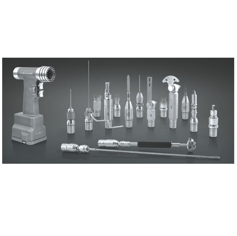 Predefiniowane zestawy ortopedyczne, sercowo-naczyniowe, +-/wierteł i wiertarki z piłą sagitalną. Rękojeść i akcesoria podlegają sterylizacji w autoklawie. Bateria połączona z silnikiem wyjmowana na czas sterylizacji, umieszczana z powrotem w rękojeści z zastosowaniem sterylnego tunelu. Takie rozwiązanie zwiększa żywotność zestawu. Karinca posiada nowoczesne akumulatory litowo-jonowe.