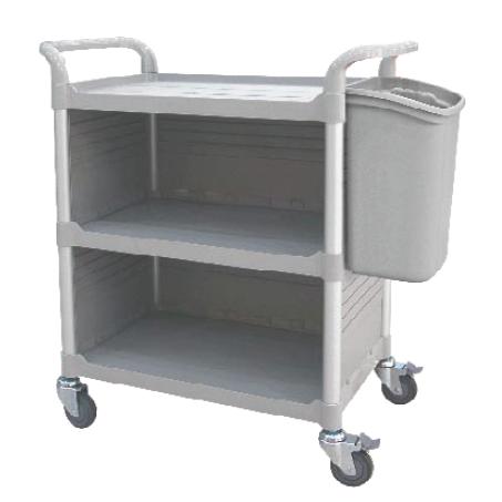Rama wózka wykonana jest z aluminium, a blat roboczy i rączki boczne z wytrzymałego plastiku PP (POLIPROPYLEN). Wózek posiada 4 niebrudzące kółka (100mm) z tworzywa TPR.