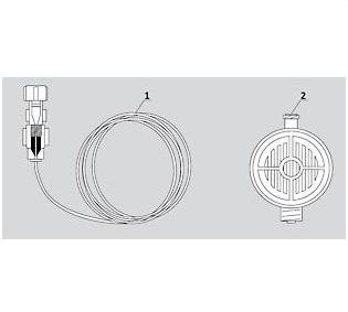 Zestaw do analgezji ran pooperacyjnych zapewnia możliwość podawania środków przeciwbólowych bezpośrednio do rany. Elementy zestawu: 1. kateter epiduralny (otwory pomiędzy 5 a 15 cm), 2. filtr przeciwbakteryjny 0.2 µm, pow. filtrowania ok. 5 cm2.